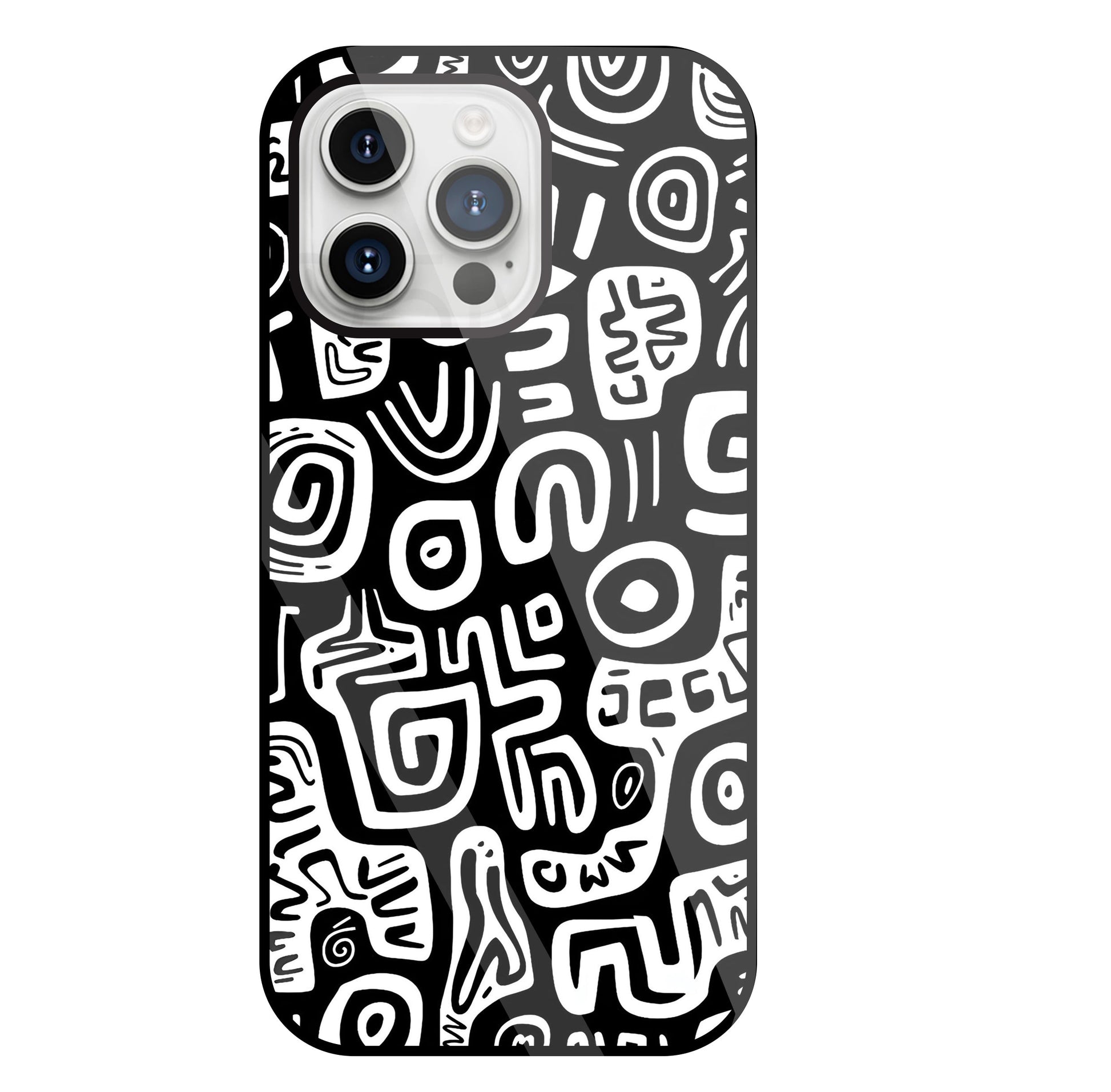 Black And White Doodle Art Glass Case For Apple iPhone 15 Pro Max