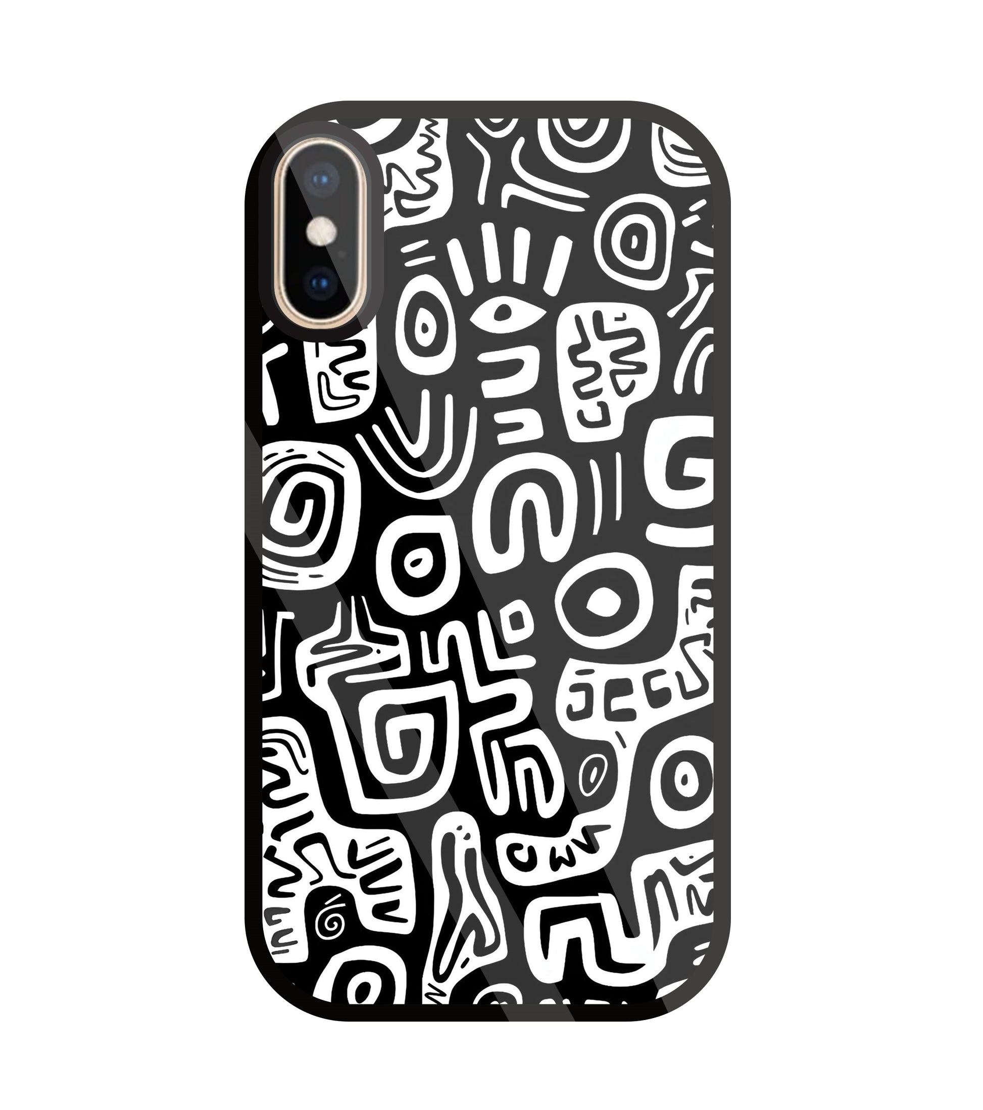 Black And White Doodle Art Glass Case For Apple iPhone Xs