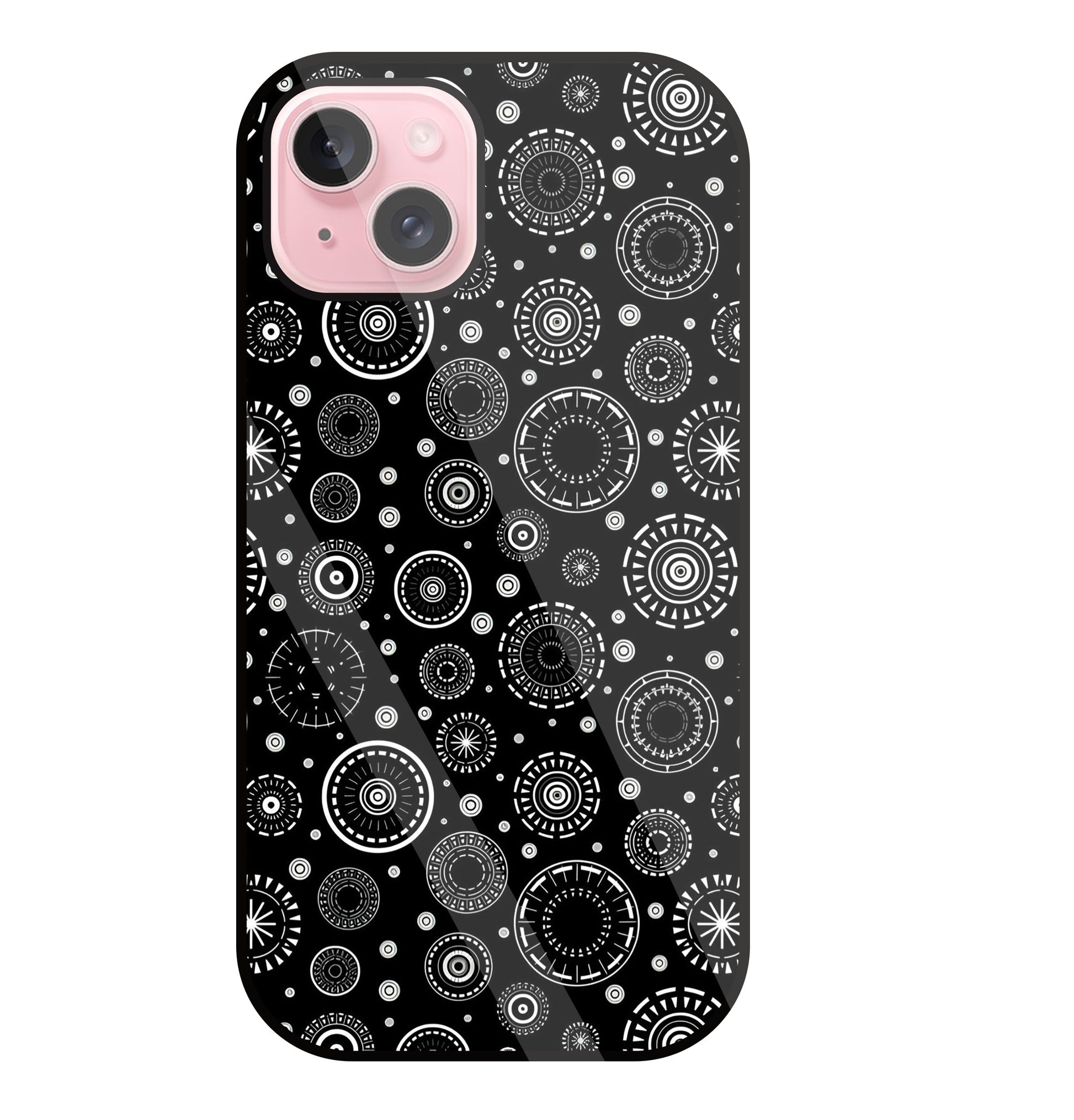Black Circle Pattern Glass Case For Apple iPhone 15 Plus