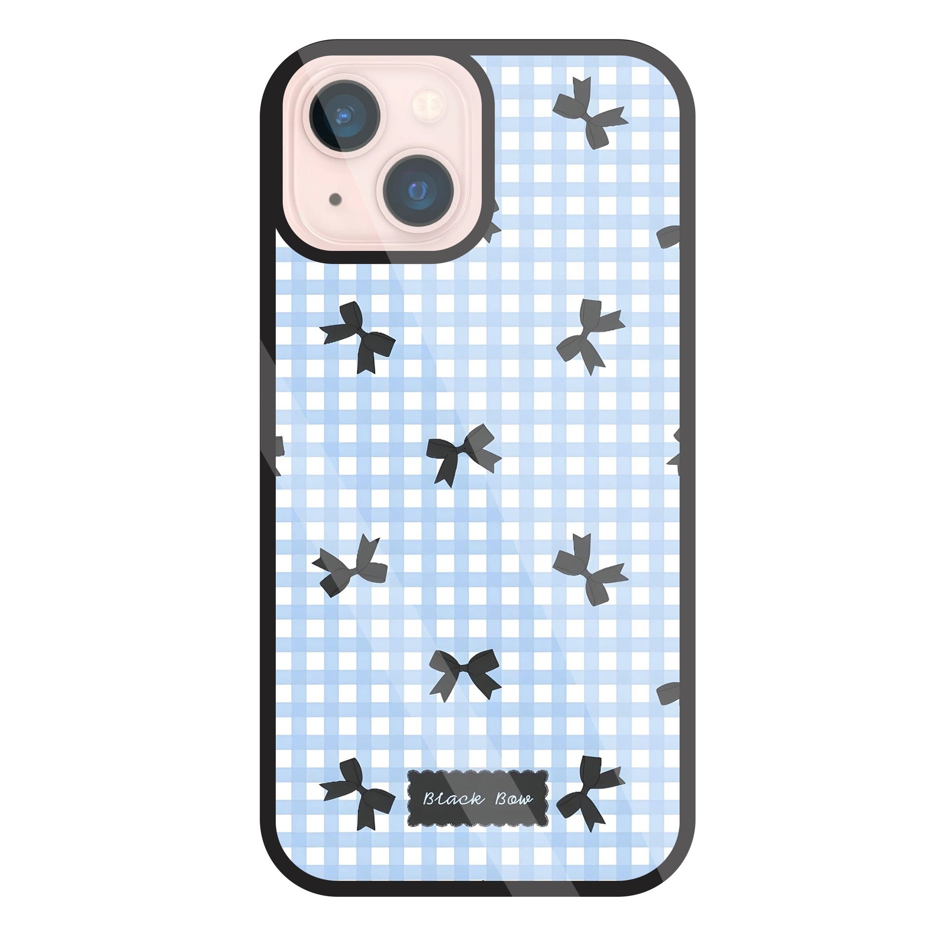 Black Ribbon With Check Pattern Glass Case For Apple iPhone 13 Mini