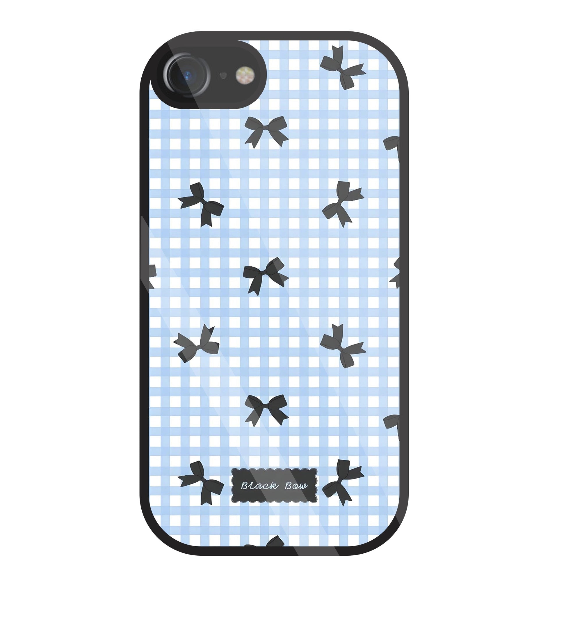 Black Ribbon With Check Pattern Glass Case For Apple iPhone 7