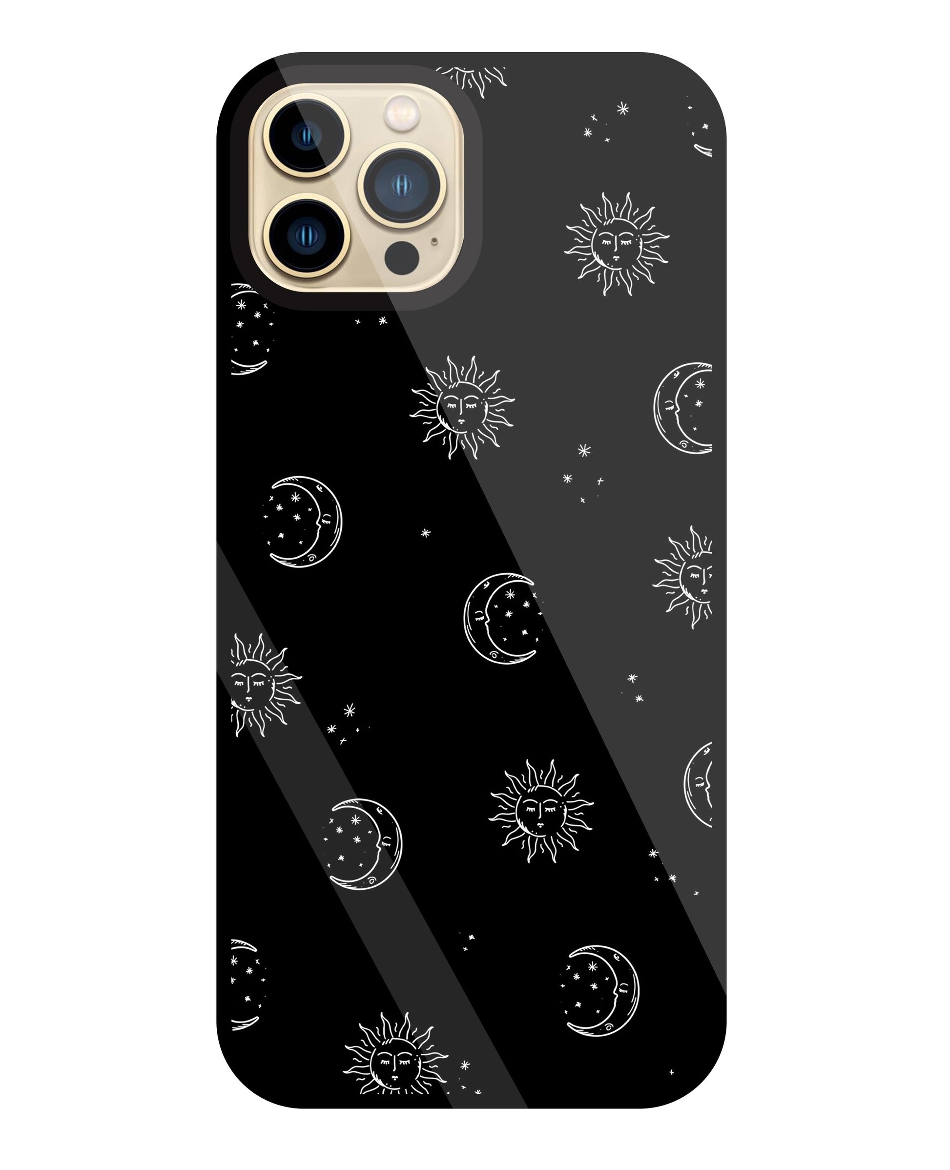 Black Sun With Moon Glass Case For Apple iPhone 13 Pro Max