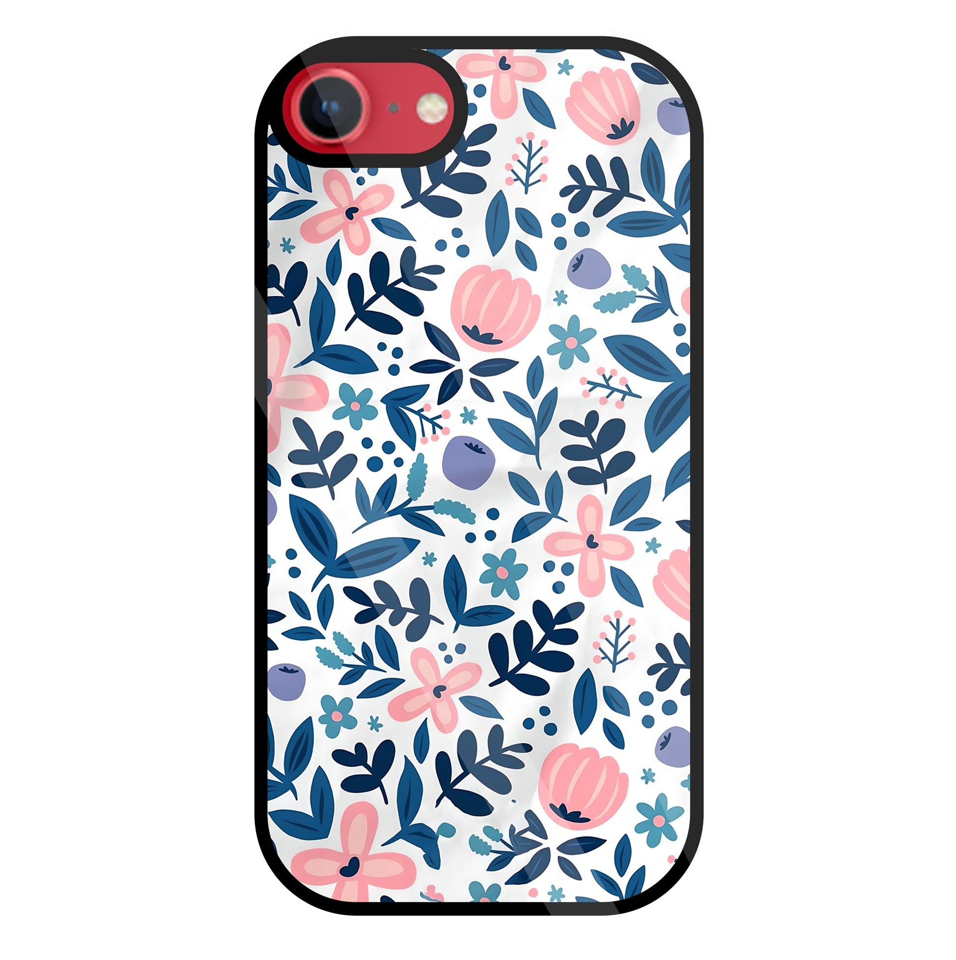 Blue- Pink Flower Pattern Glass Case For Apple iPhone 8