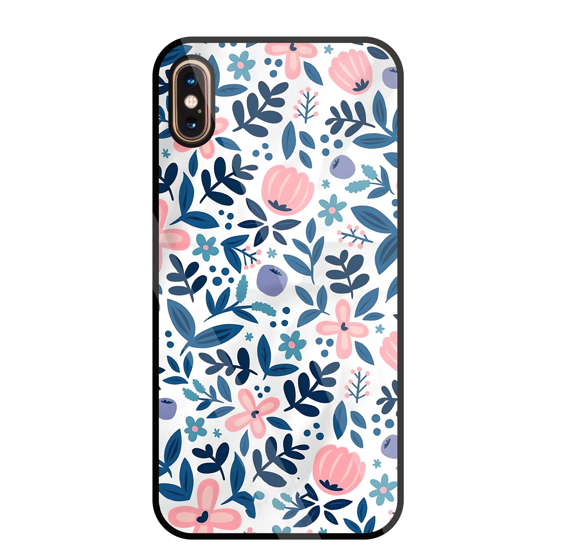 Blue- Pink Flower Pattern Glass Case For Apple iPhone Xs Max