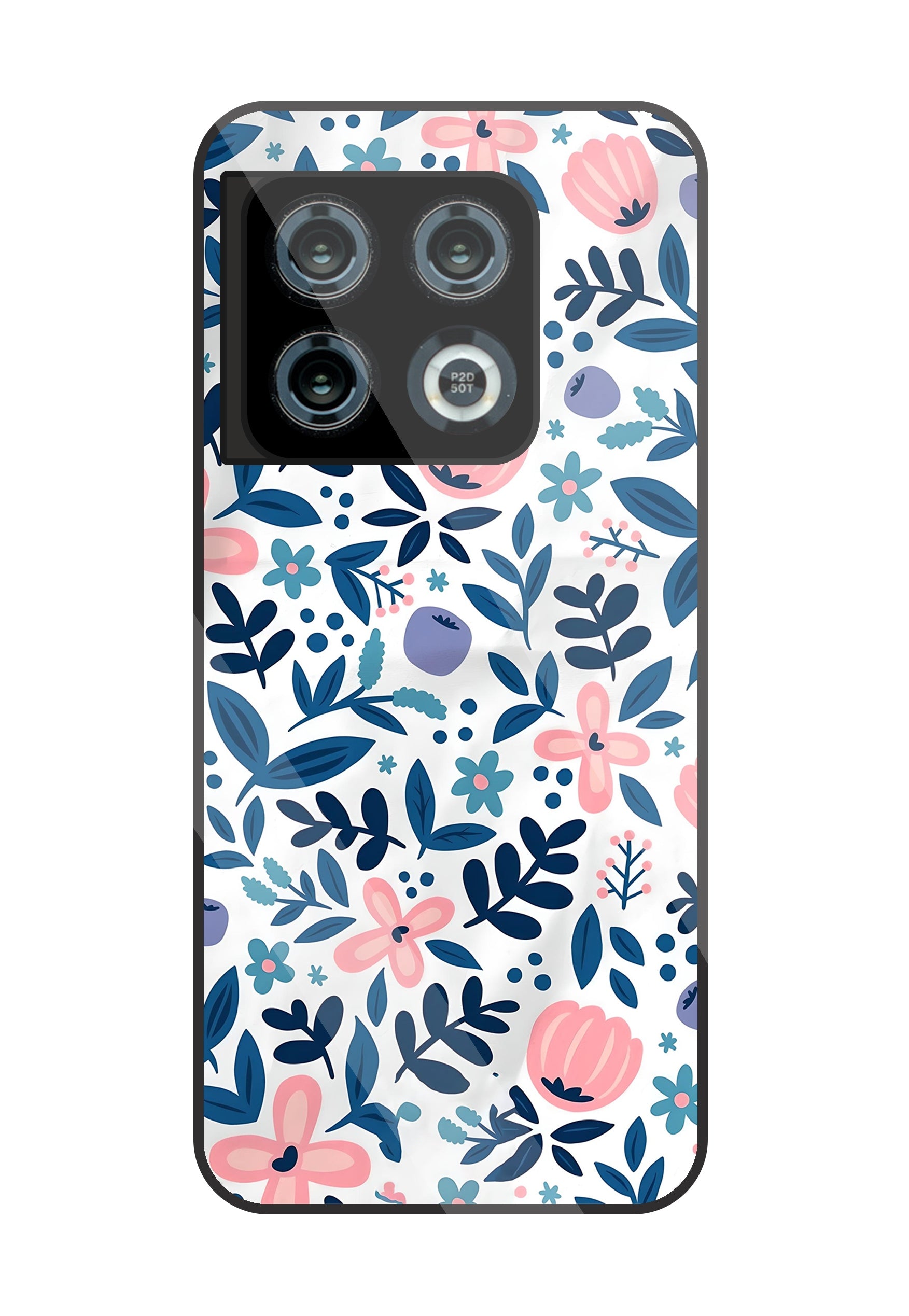 Blue-Pink Flower Pattern Glass Case For OnePlus 10 Pro