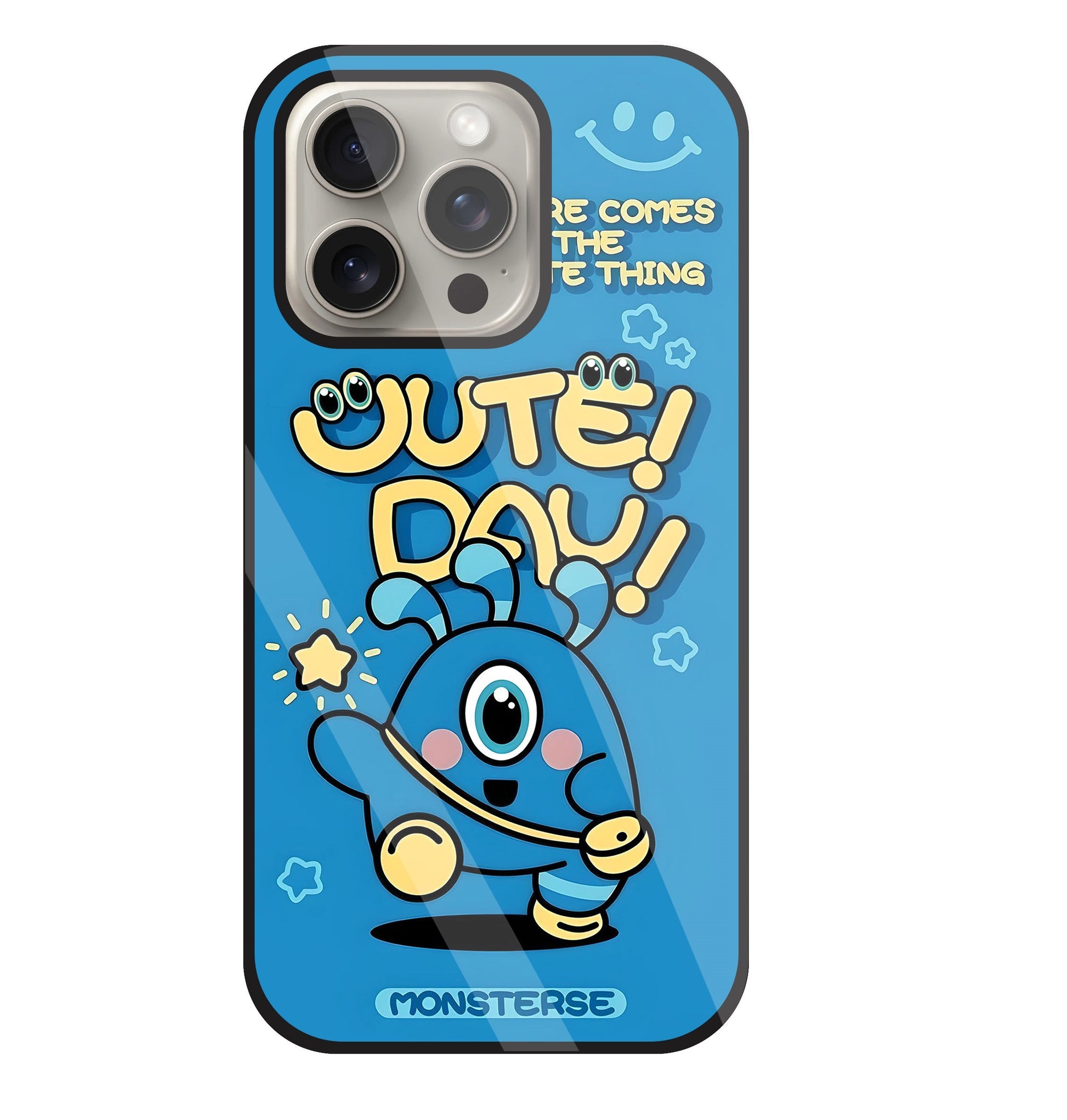 Cute Day! Monsterse Blue Glass Case For Apple iPhone 15 Pro
