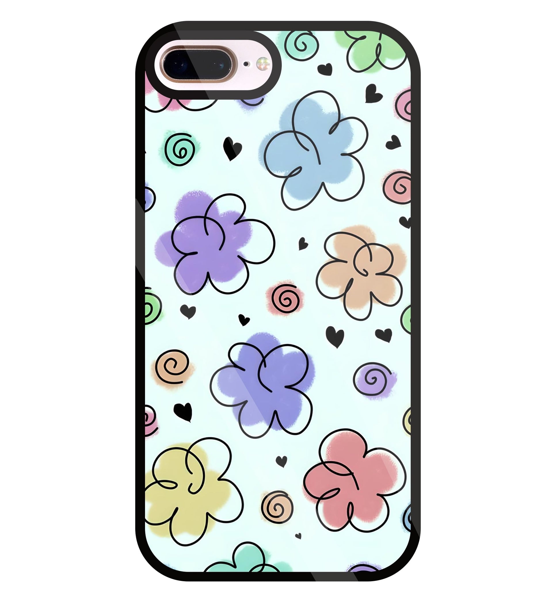 Cute Line Art Flowers Glass Case For Apple iPhone 8 +