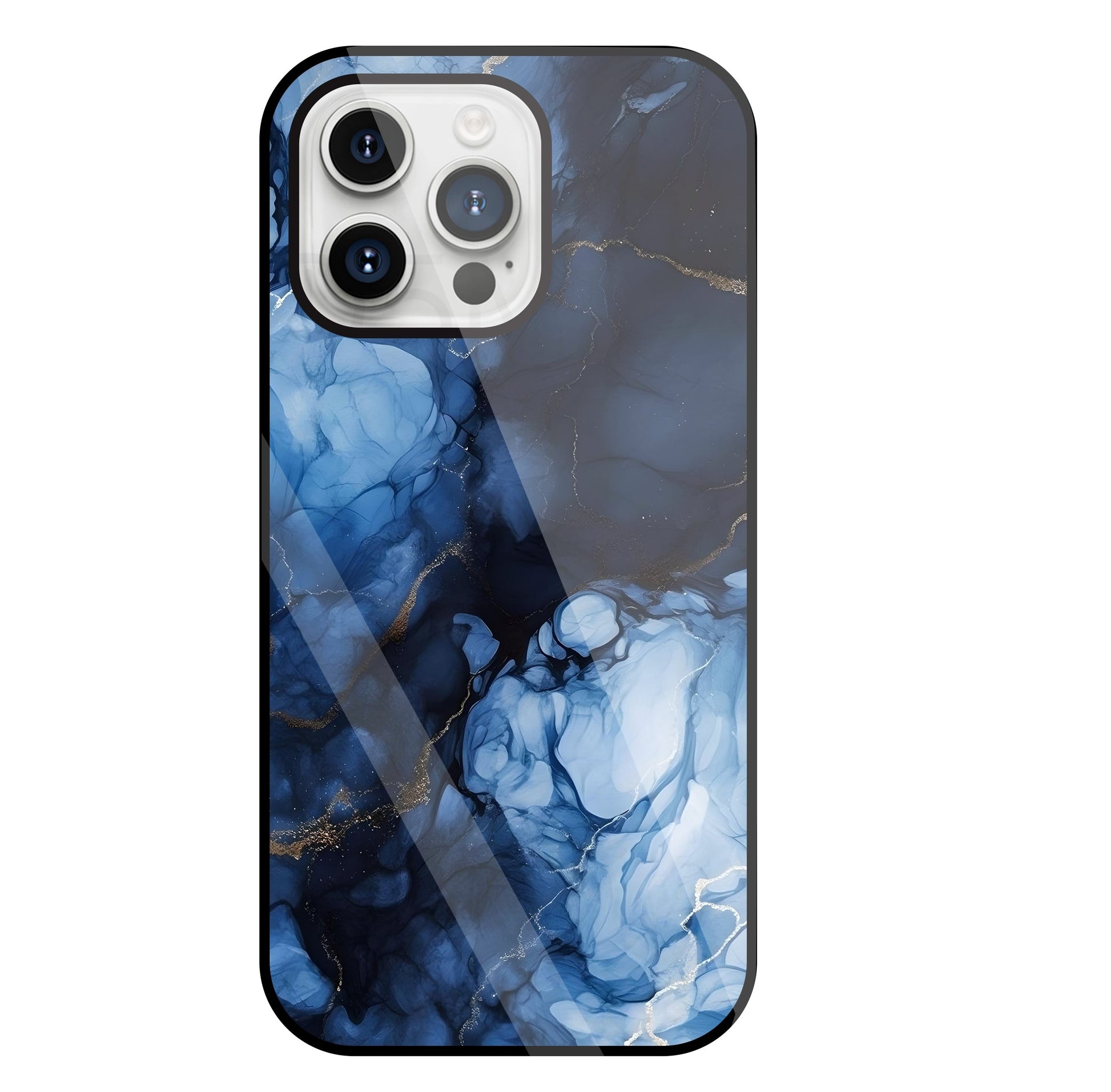 Dark Blue Marble Glass Case For Apple iPhone 15 Pro Max