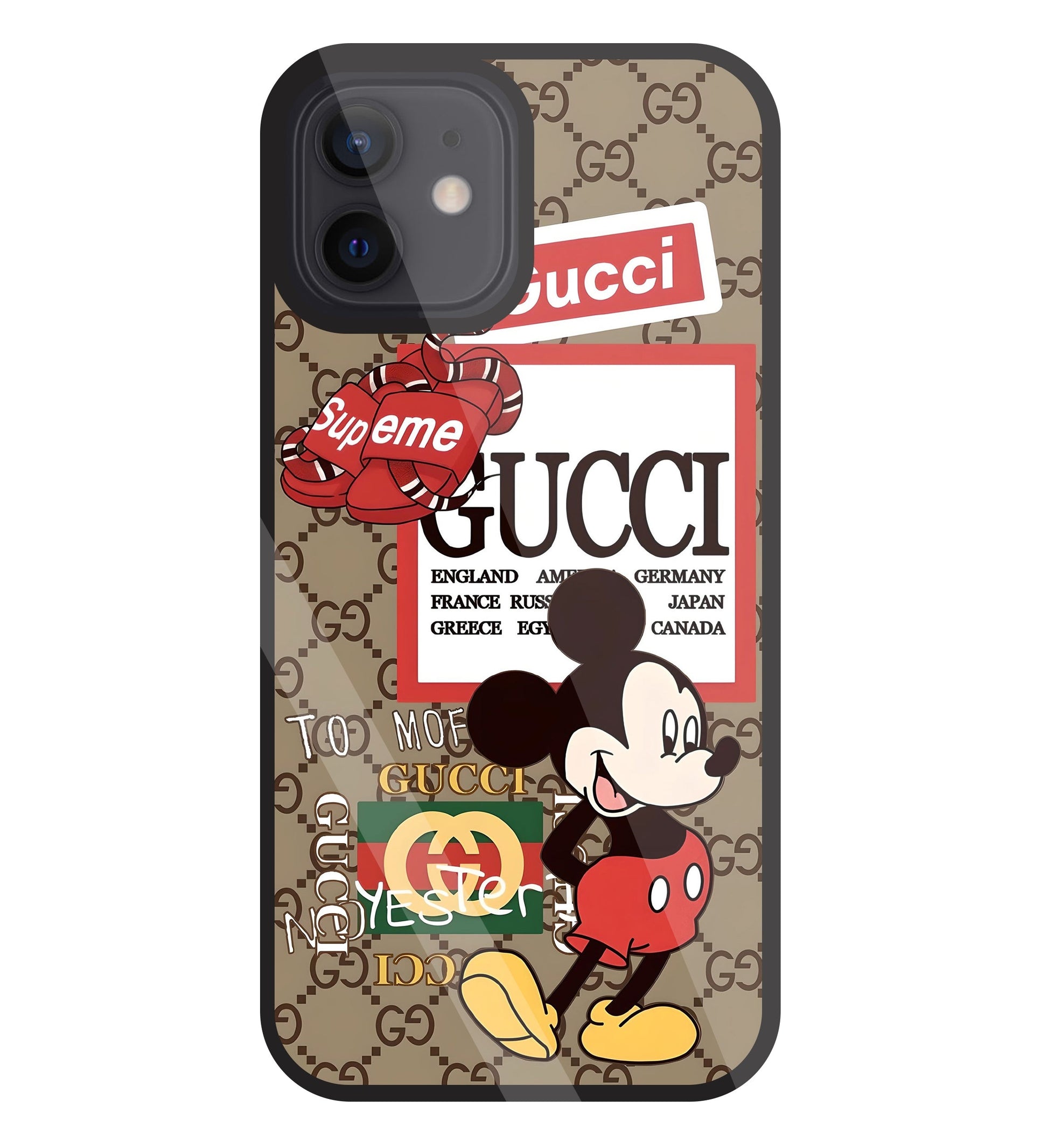 Gucci Mickey Glass Case For Apple iPhone 12