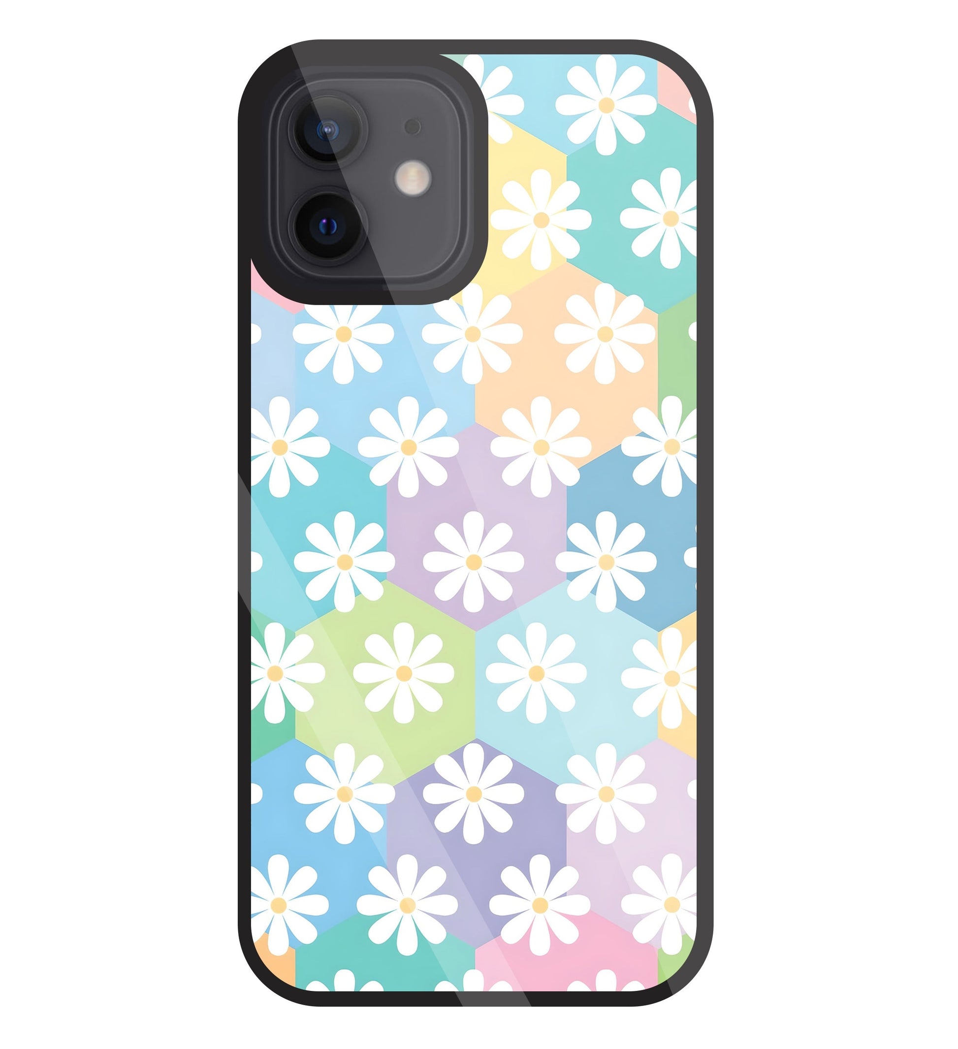 Hexagon Daisy Flower Glass Case For Apple iPhone 12