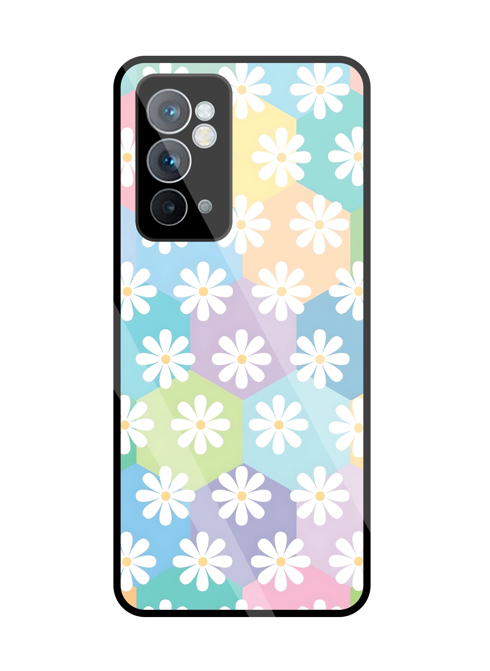 Hexagon Daisy Flower Glass Case For OnePlus 9RT