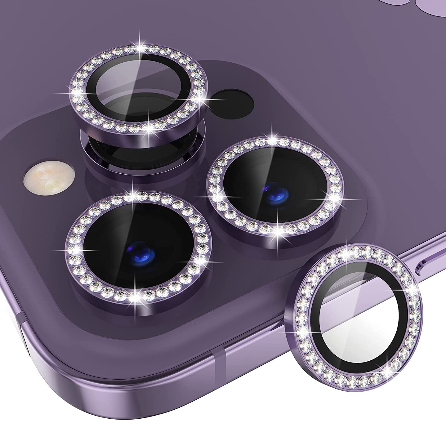 iPhone 14 Series Diamond Camera Lens Protector for Apple | HD Clear Real Glass Protection + Metal Alloy Full Fit Lens Ring Cover
