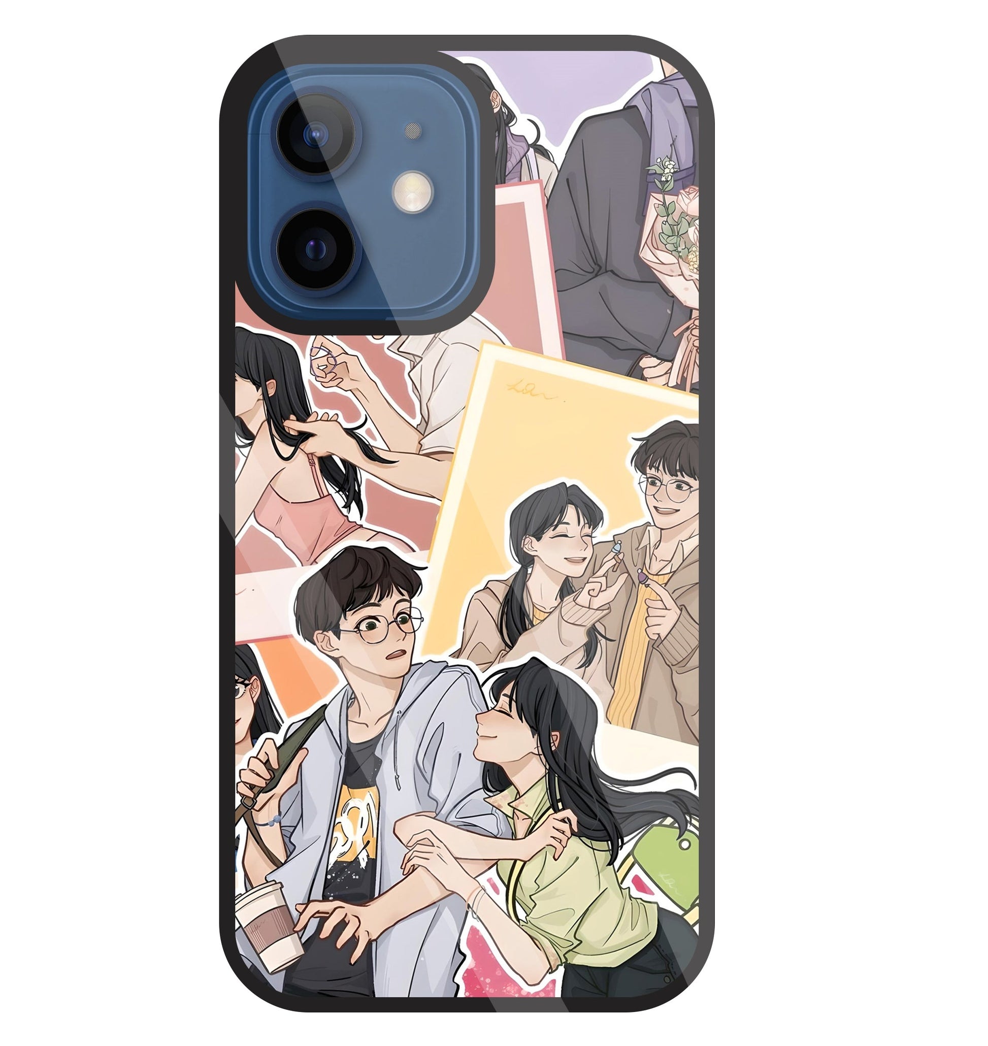 Korean Couples Glass Case For Apple iPhone 12 Mini