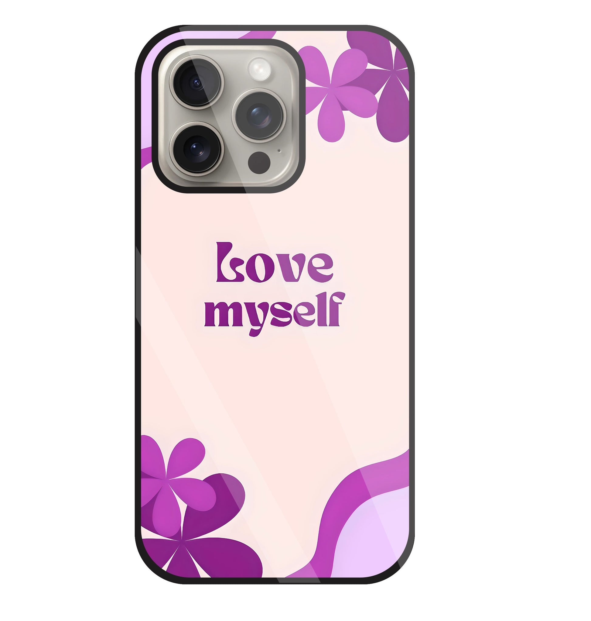 Love Myself Purple Flower Glass Case For Apple iPhone 15 Pro