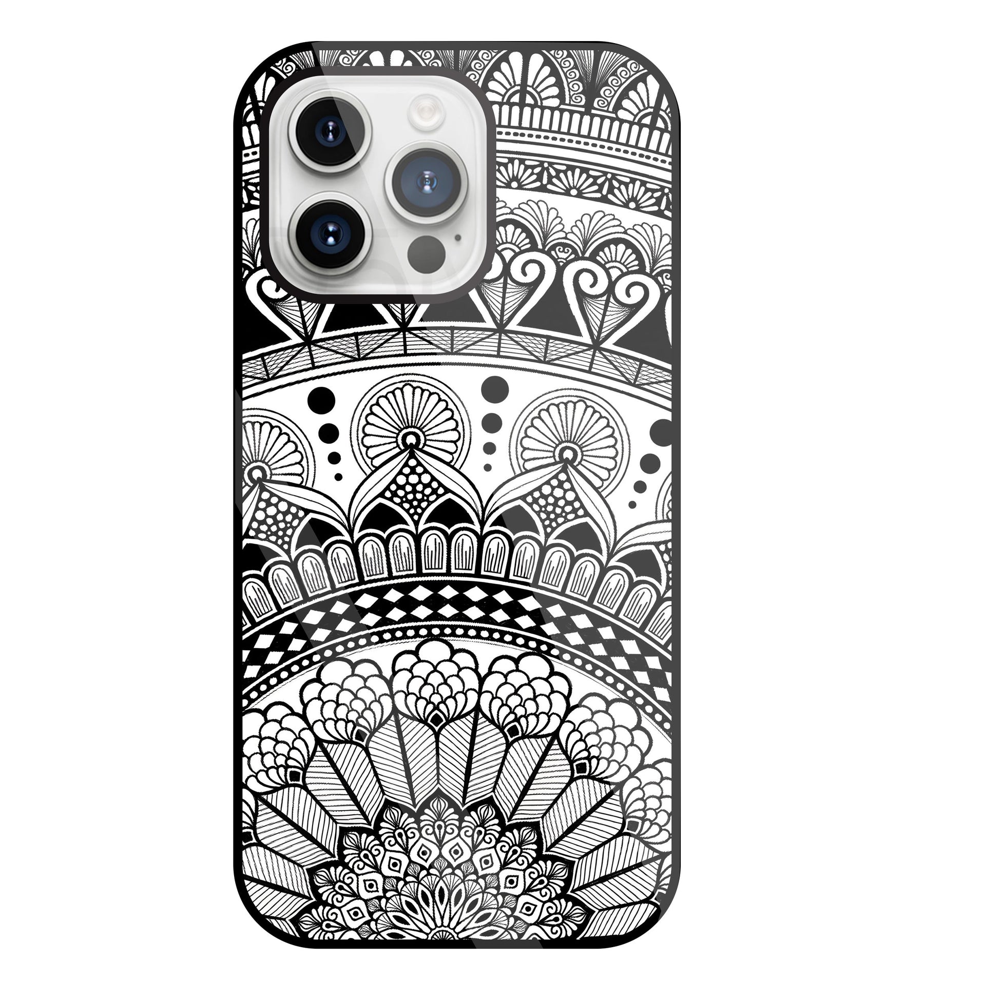 Mandala Pattern Black And White Glass Case For Apple iPhone 15 Pro Max
