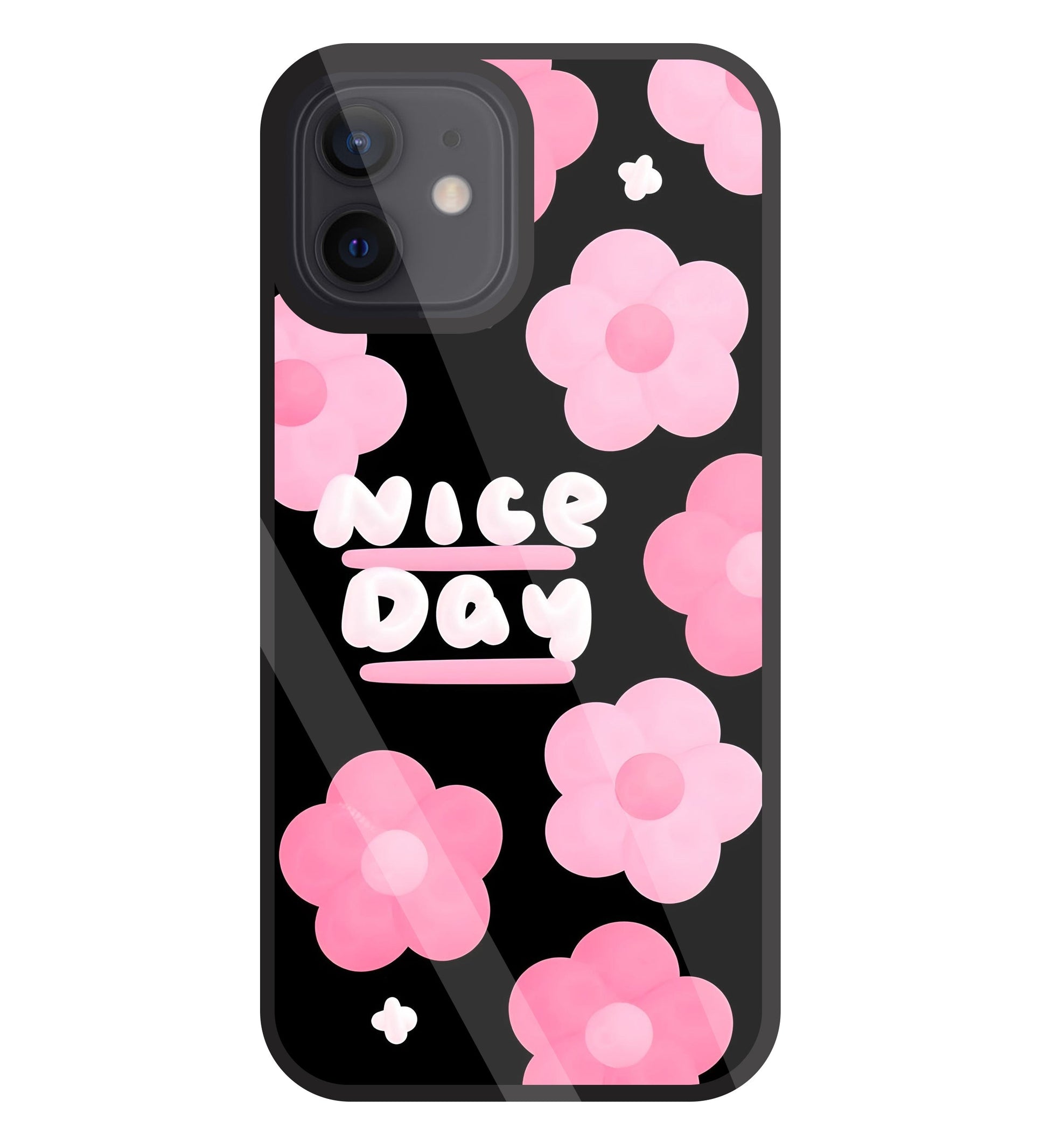 Nice Day Pink Flower Glass Case For Apple iPhone 12