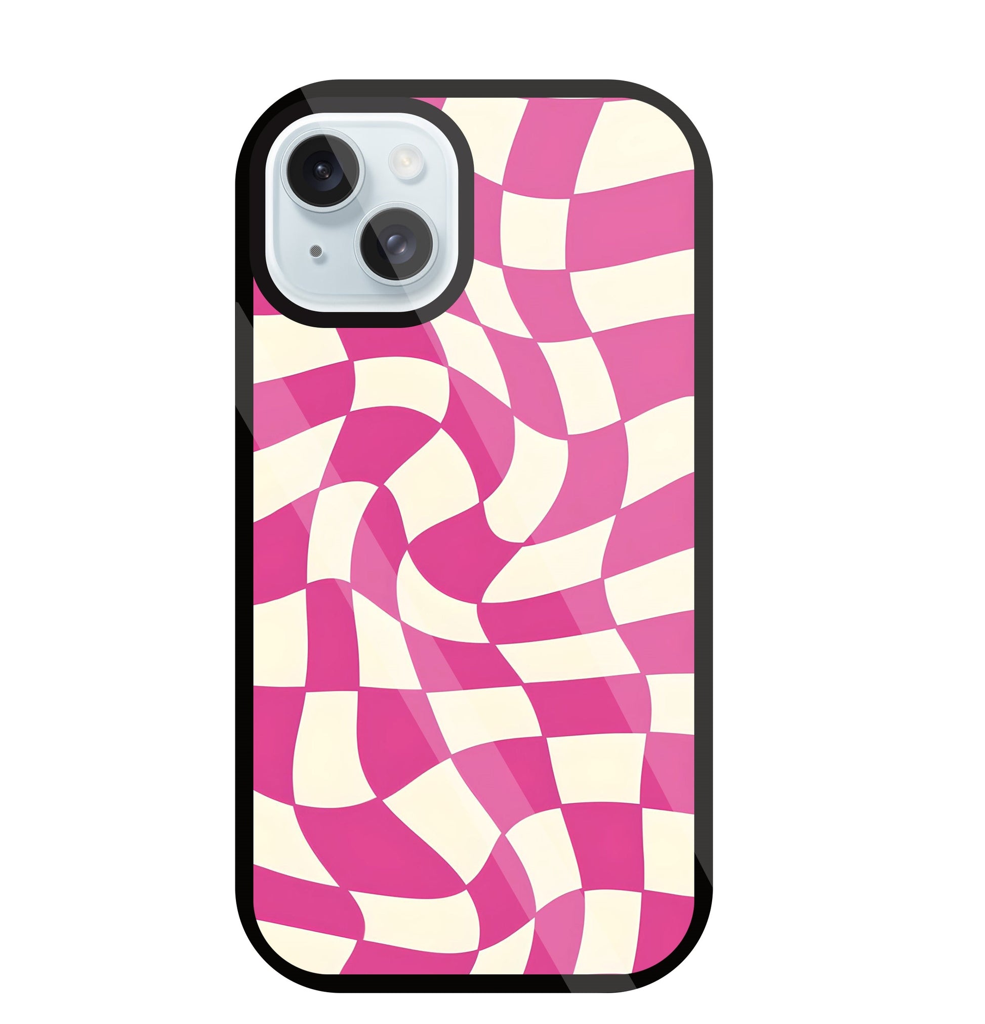 Pink And Off White Illusion Pattern Glass Case For Apple iPhone 13