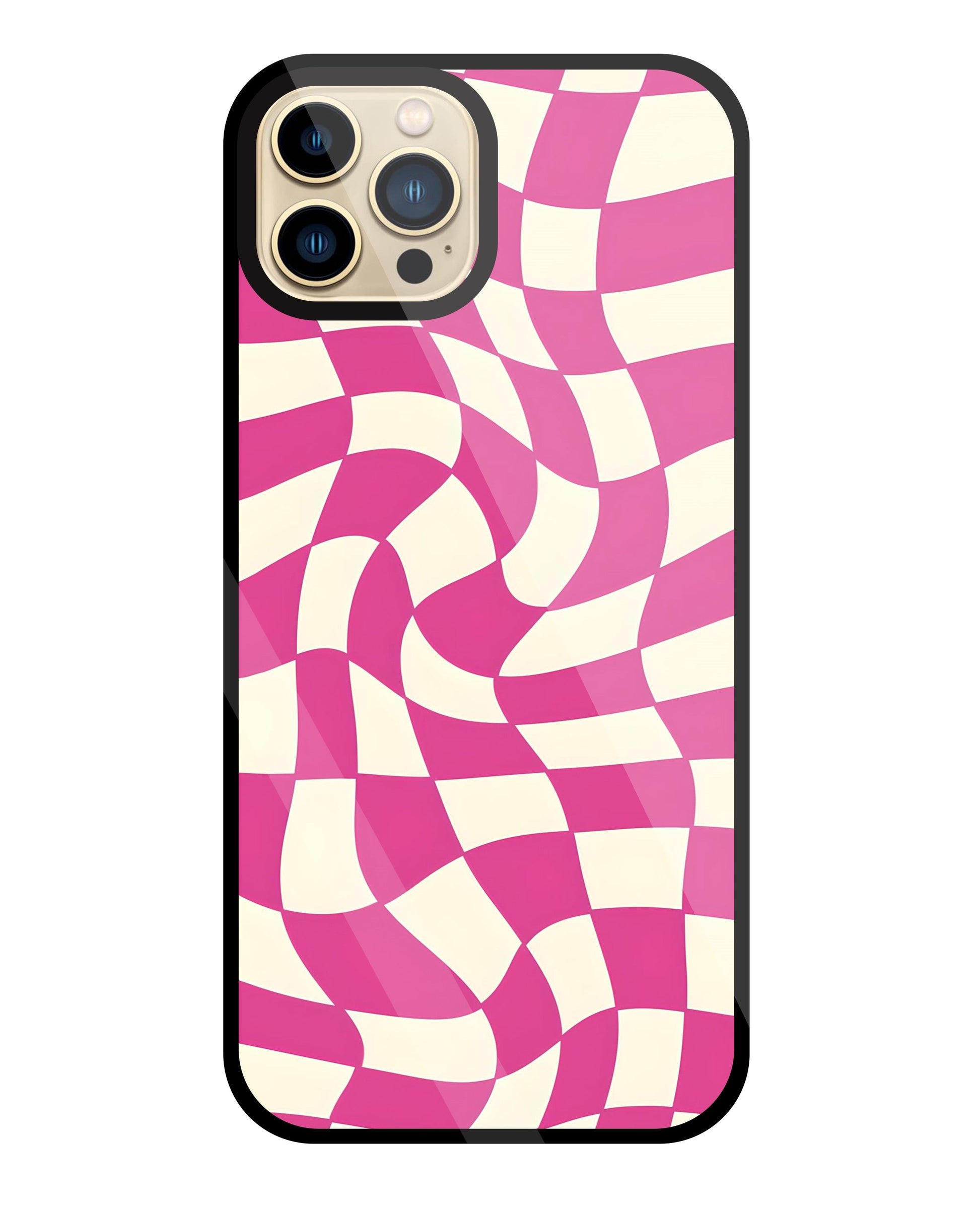 Pink And Off White Illusion Pattern Glass Case For Apple iPhone 13 Pro Max