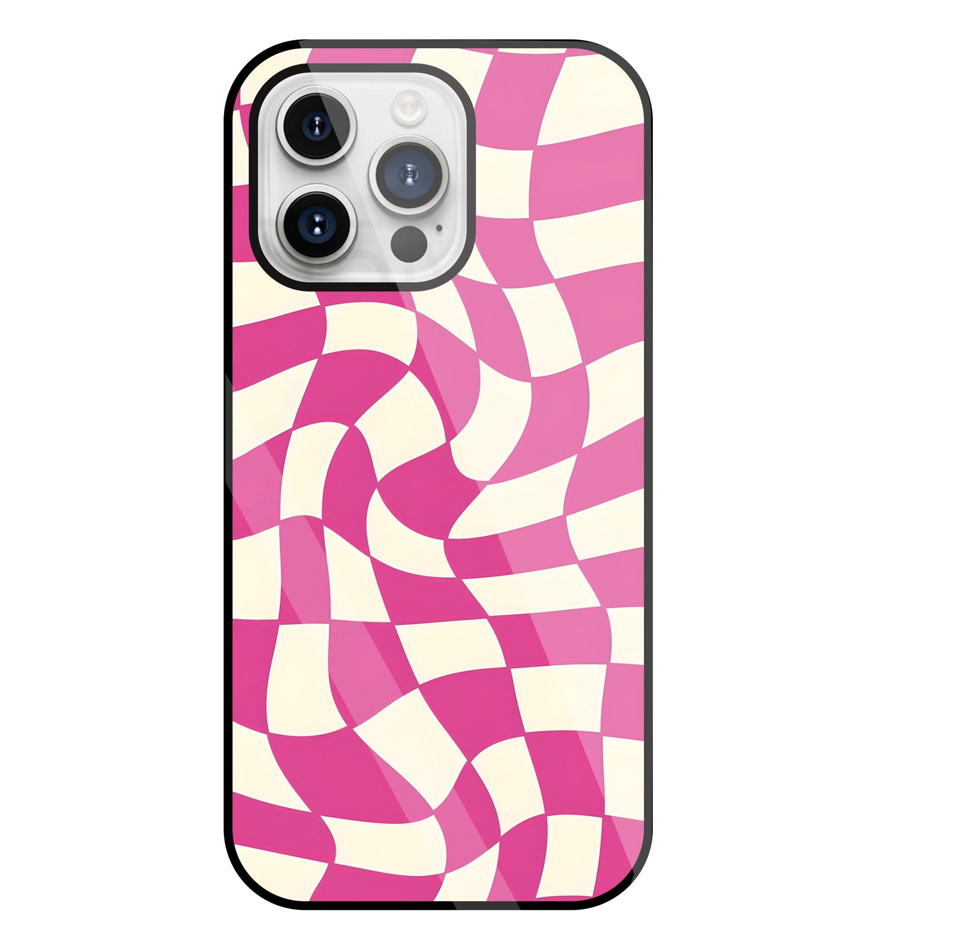 Pink And Off White Illusion Pattern Glass Case For Apple iPhone 15 Pro Max