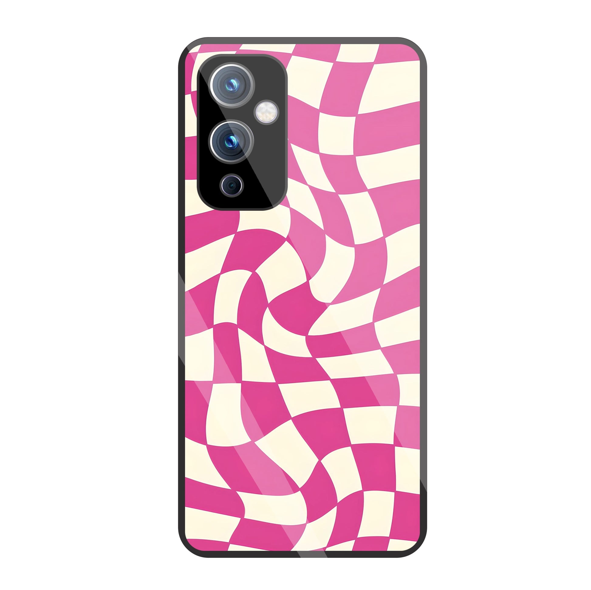 Pink And Off White Illusion Pattern Glass Case For OnePlus 9