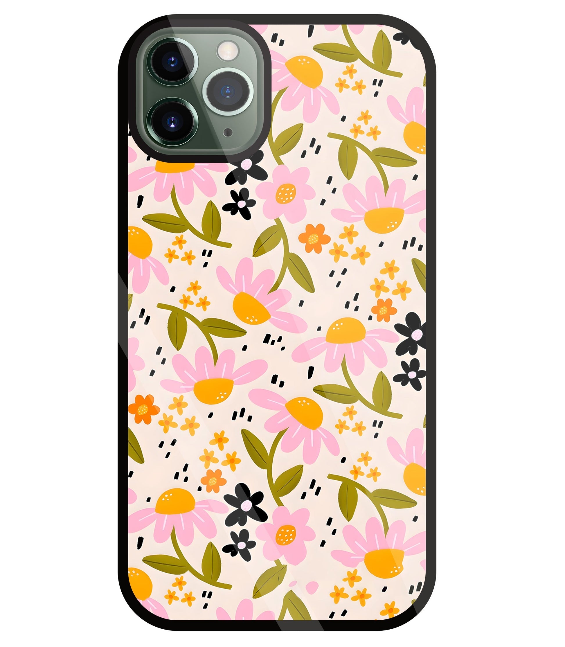 Pink And Yellow Flowers Glass Case For Apple iPhone 11 Pro Max