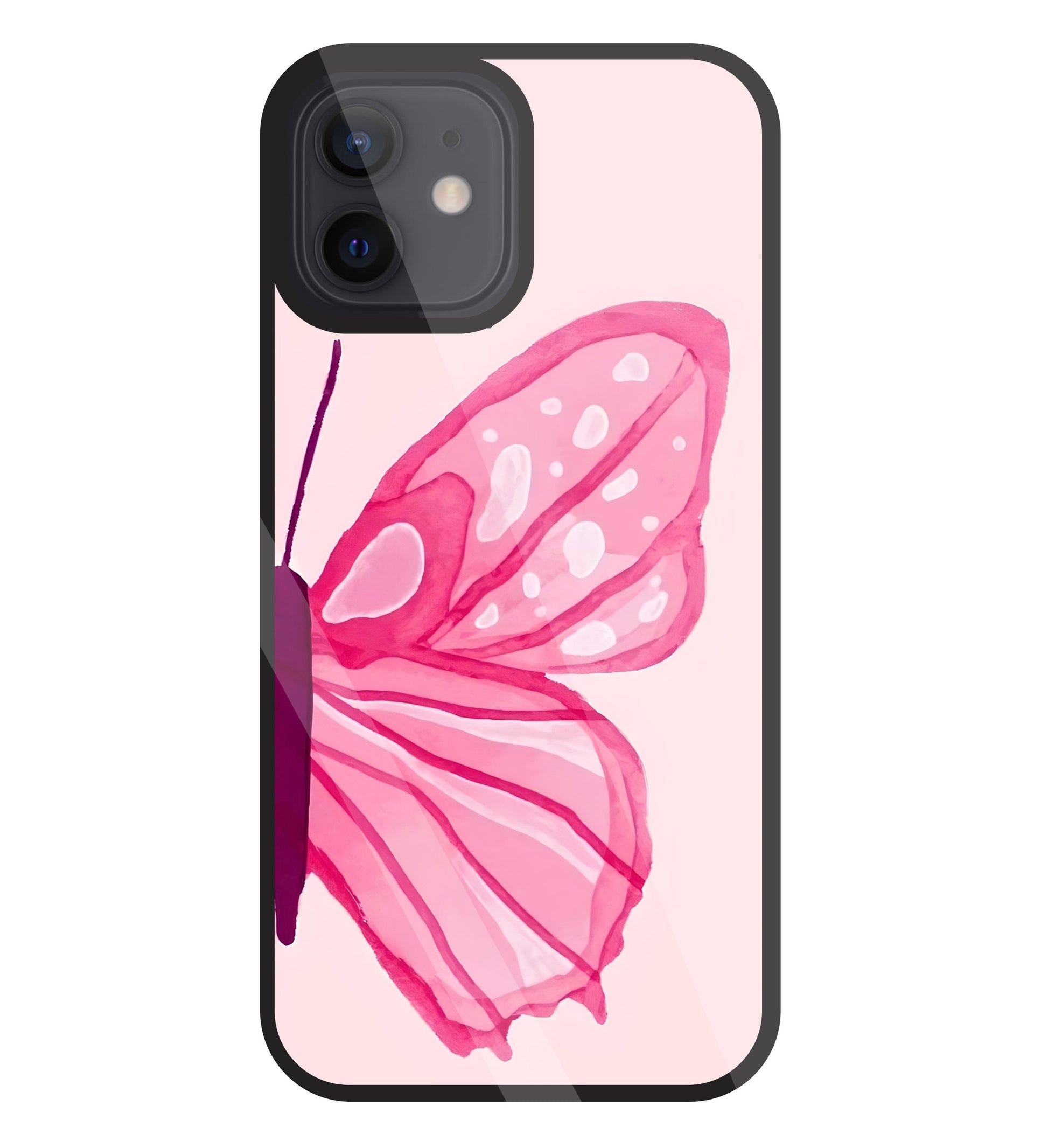 Pink ButterFly Art Glass Case For Apple iPhone 12