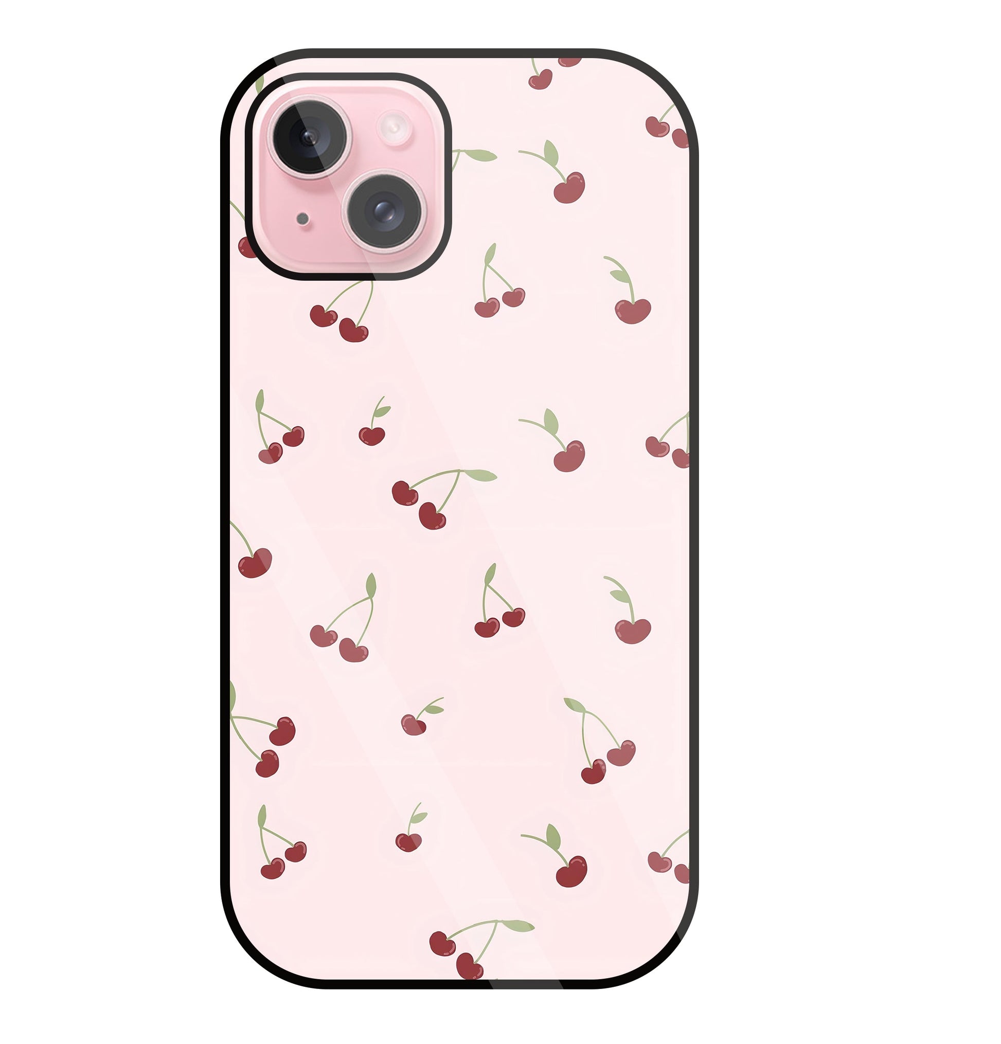 Pink Cherry Glass Case For Apple iPhone 15 Plus
