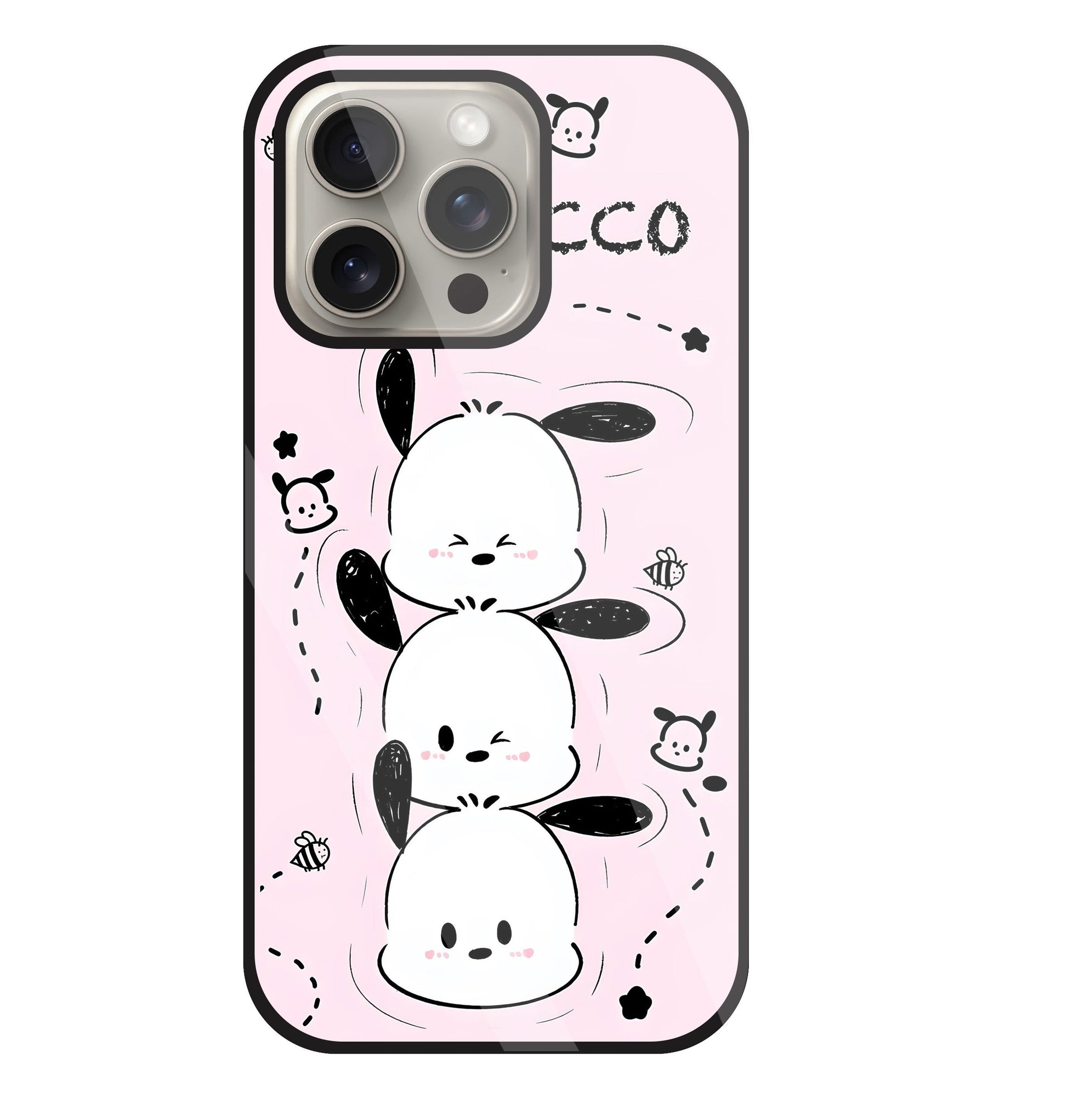 Pochacco Puppy Pink Glass Case For Apple iPhone 15 Pro