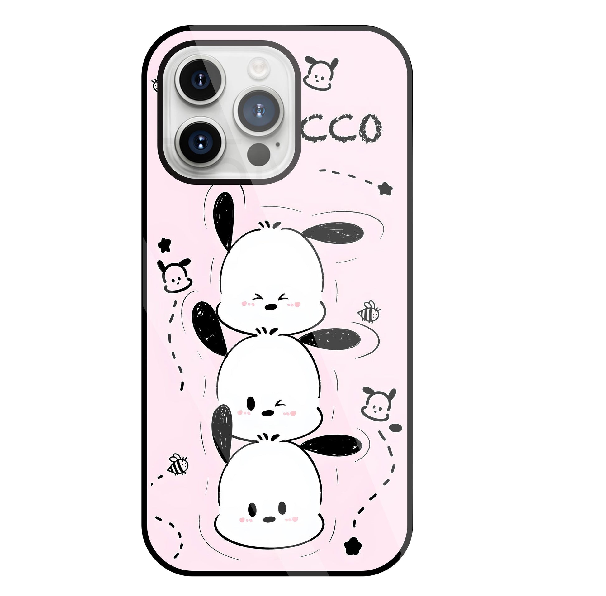 Pochacco Puppy Pink Glass Case For Apple iPhone 15 Pro Max