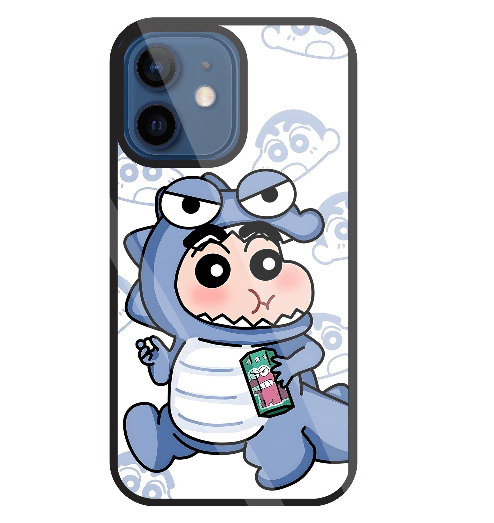 Shinchan Blue Dino Glass Case For Apple iPhone 12 Mini