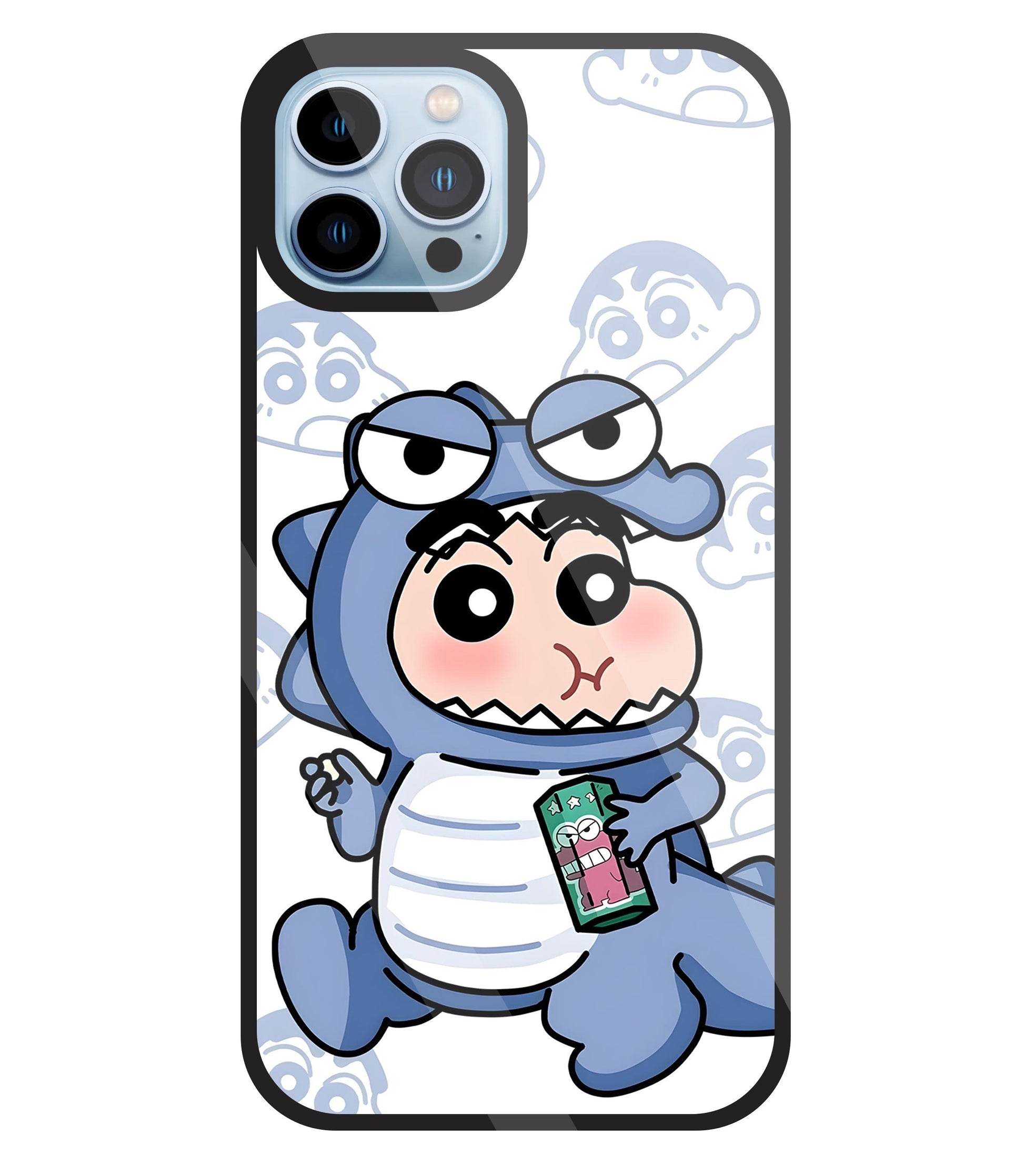 Shinchan Blue Dino Glass Case For Apple iPhone 13 Pro