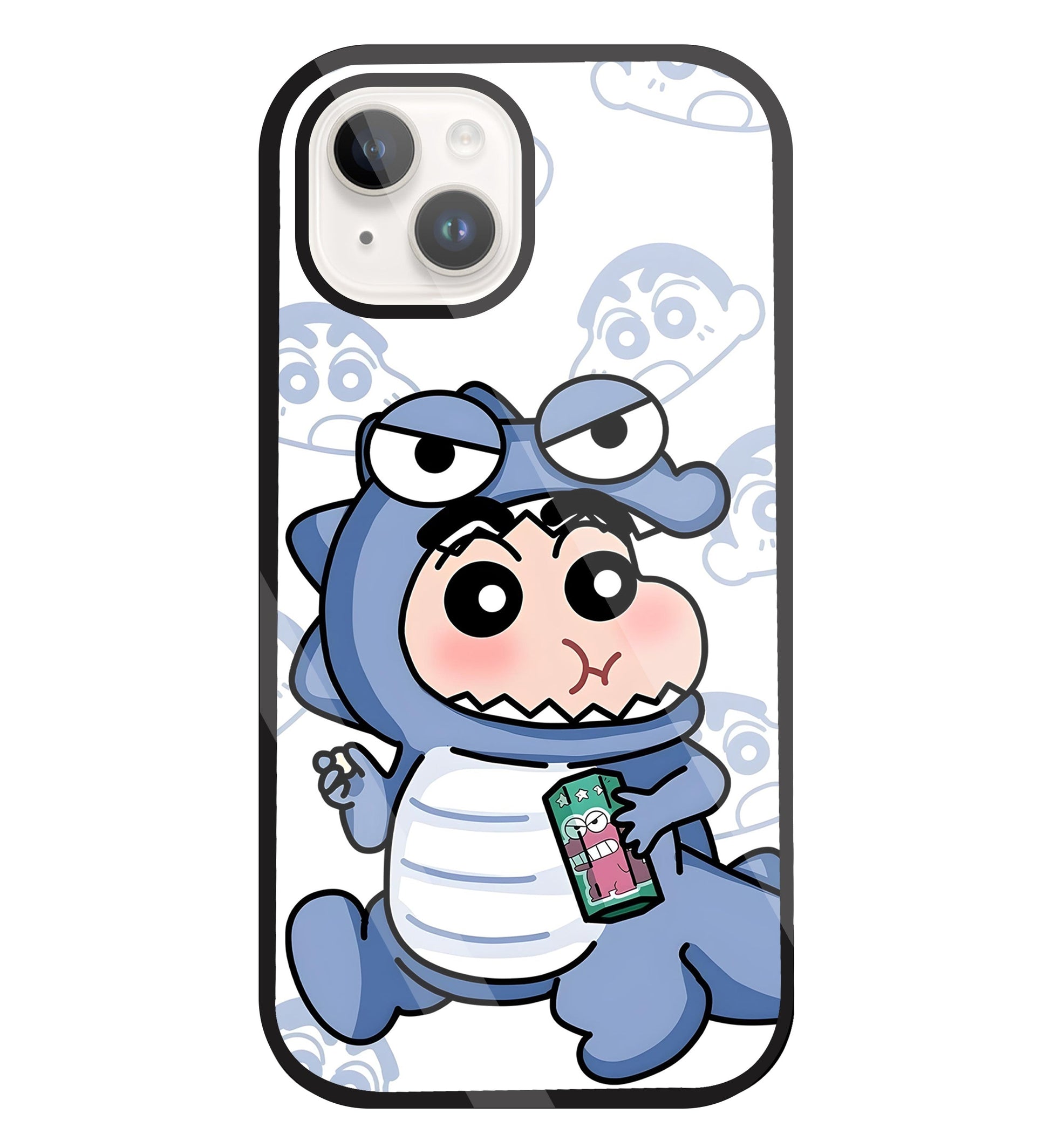 Shinchan Blue Dino Glass Case For Apple iPhone 15