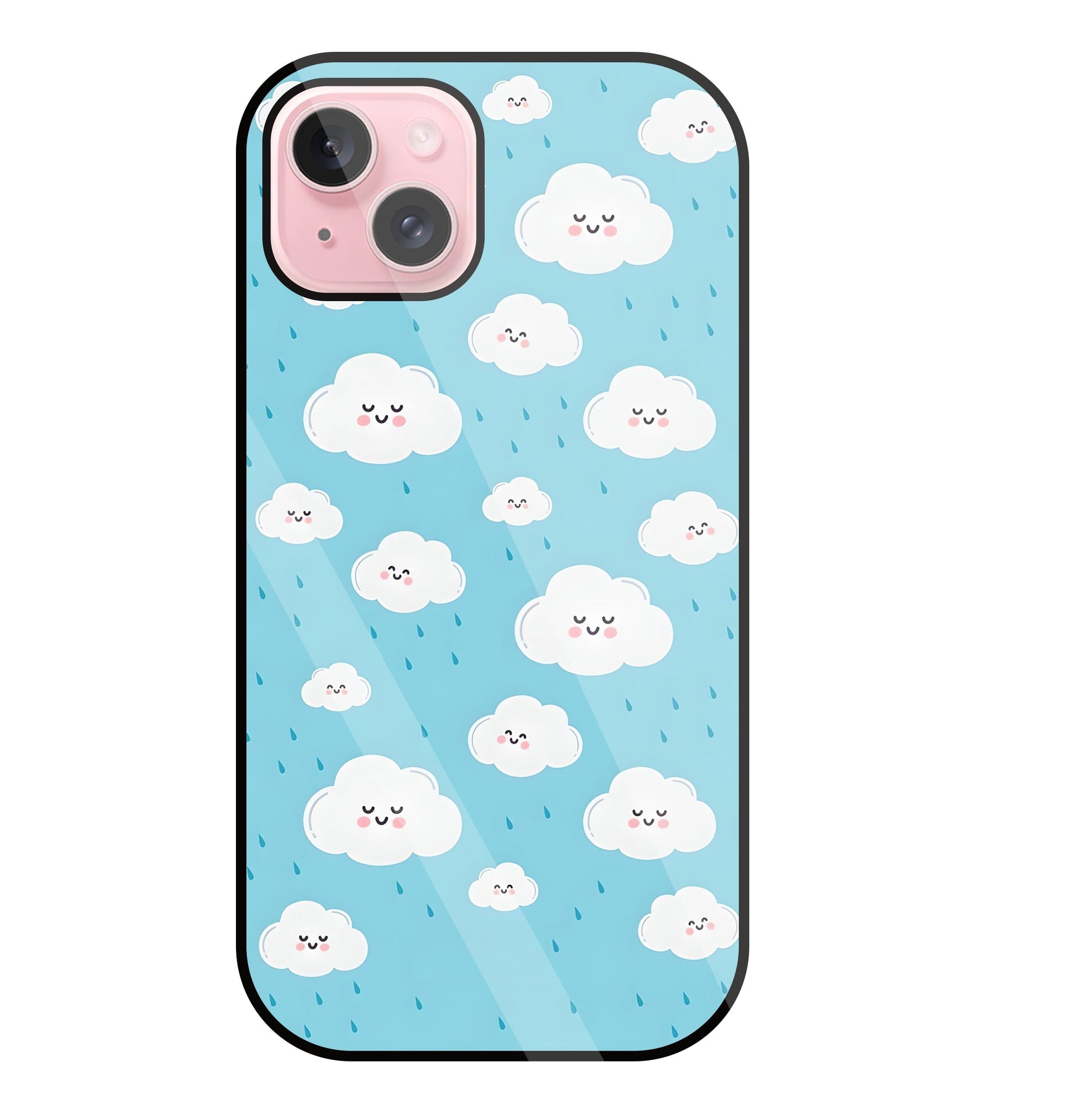 Smile Clouds With Rain Glass Case For Apple iPhone 15 Plus
