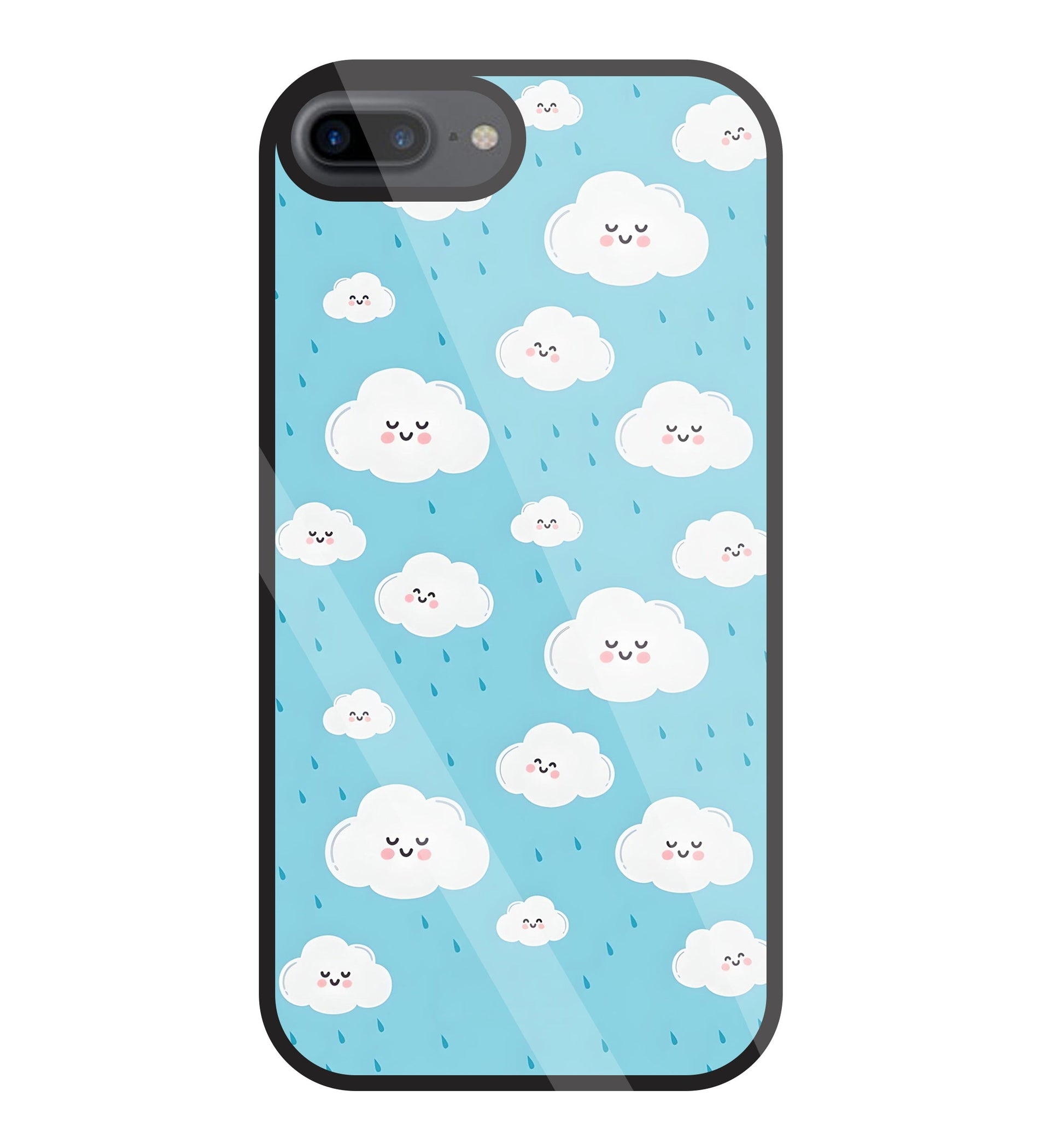 Smile Clouds With Rain Glass Case For Apple iPhone 7 +