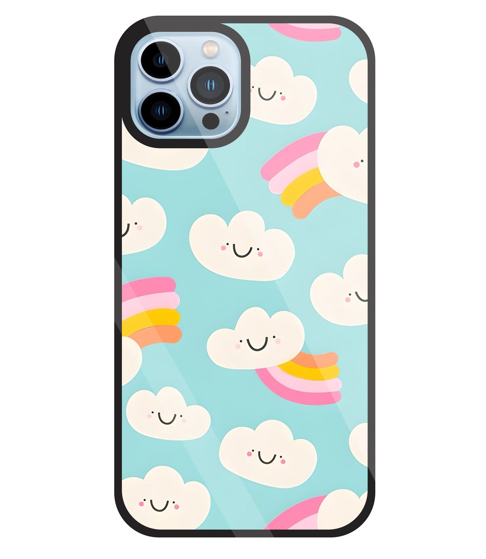 Smiley Clouds Glass Case For Apple iPhone 13 Pro
