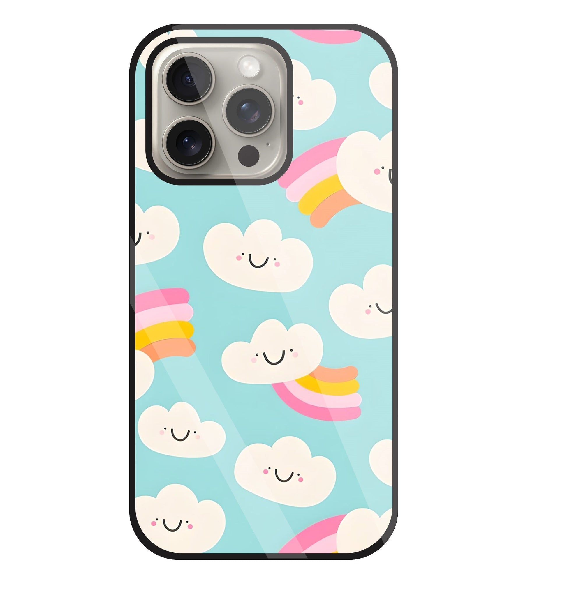 Smiley Clouds Glass Case For Apple iPhone 15 Pro