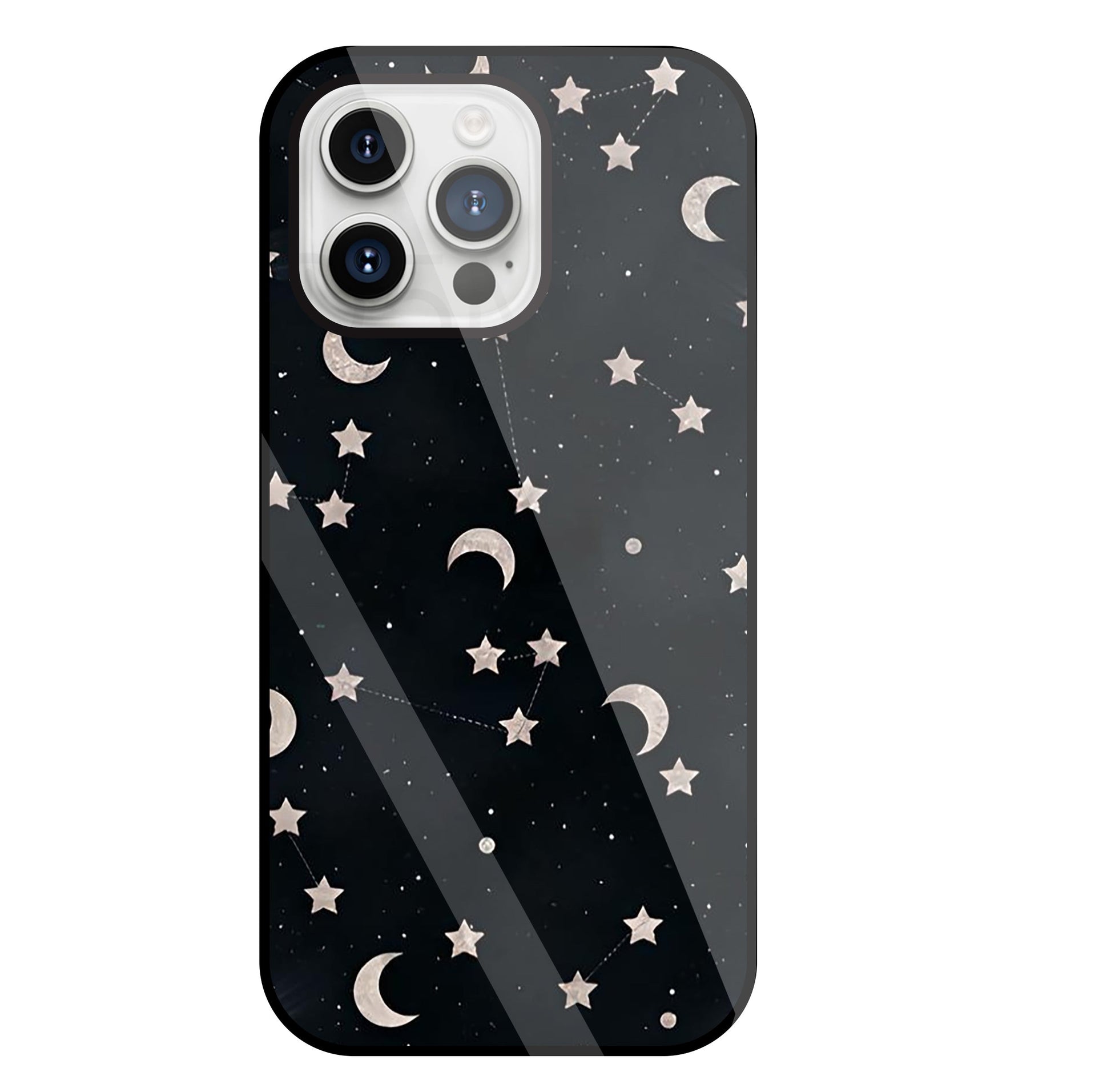 Star And Hulf Moon Space Glass Case For Apple iPhone 15 Pro Max