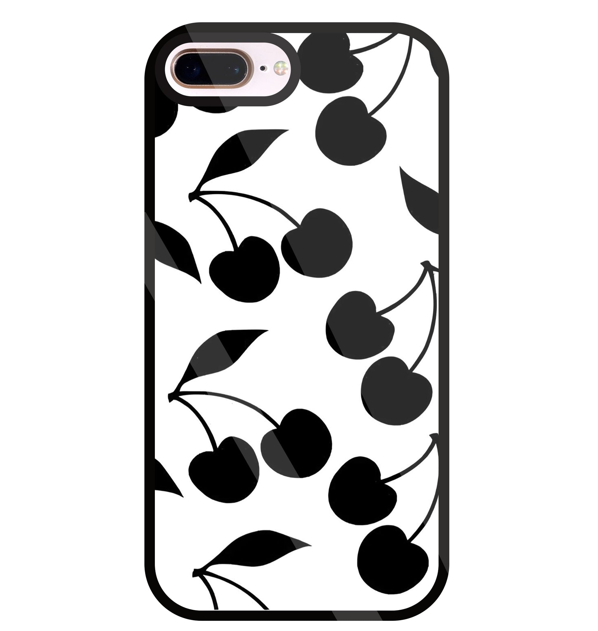 White With Black Cherry Glass Case For Apple iPhone 8 +