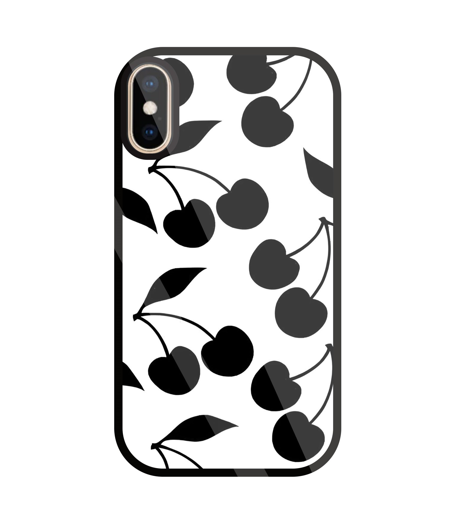 White With Black Cherry Glass Case For Apple iPhone Xs