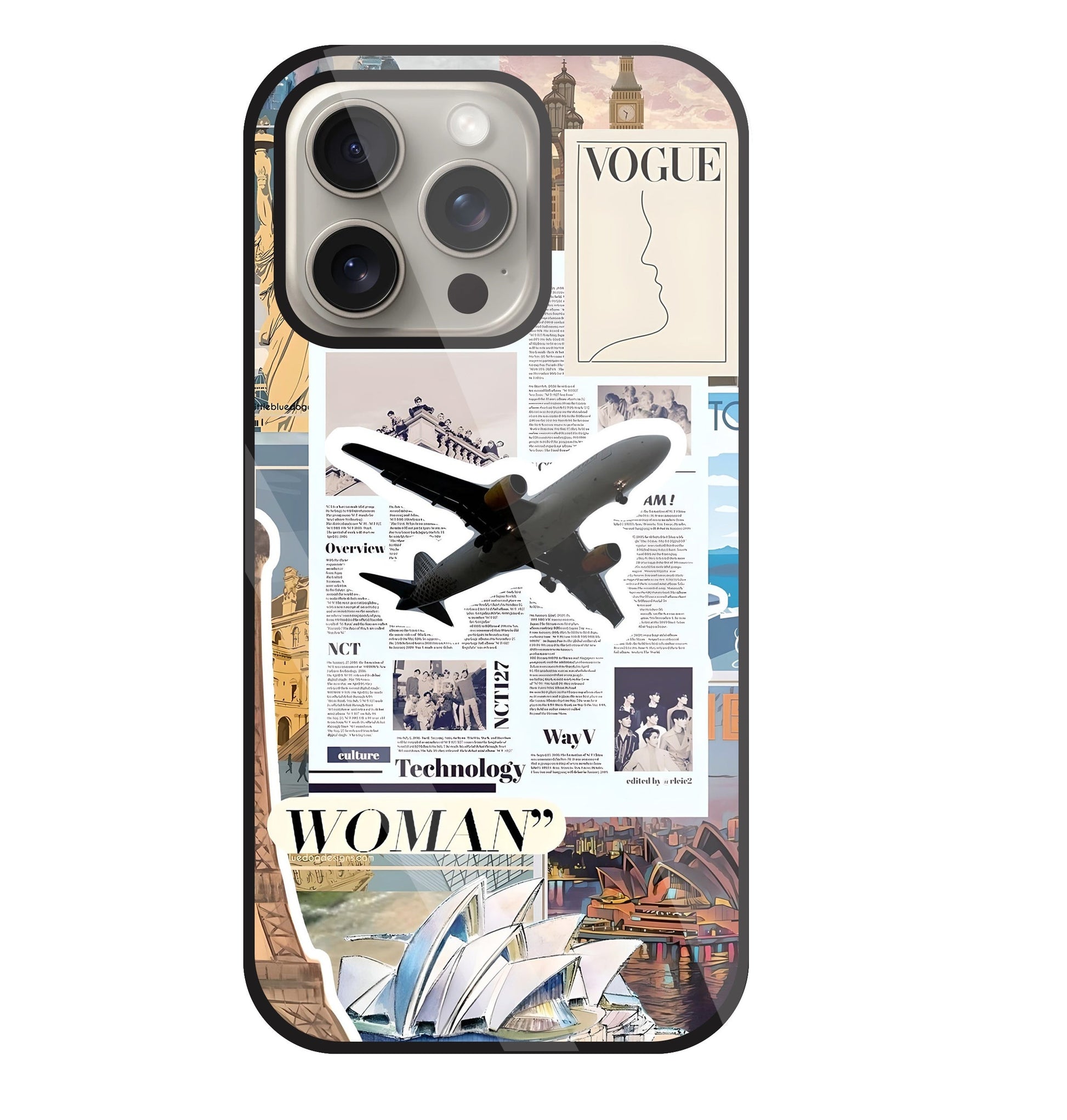 Woman Aeroplane Glass Case For Apple iPhone 15 Pro